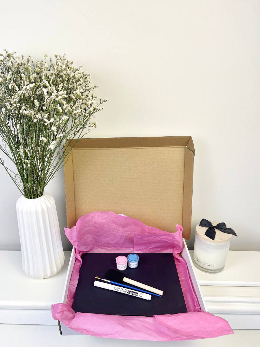 Use the 100% safe paint included to make a print youe and lovers hand. You can use our paints with no worry for you and your sweethearts